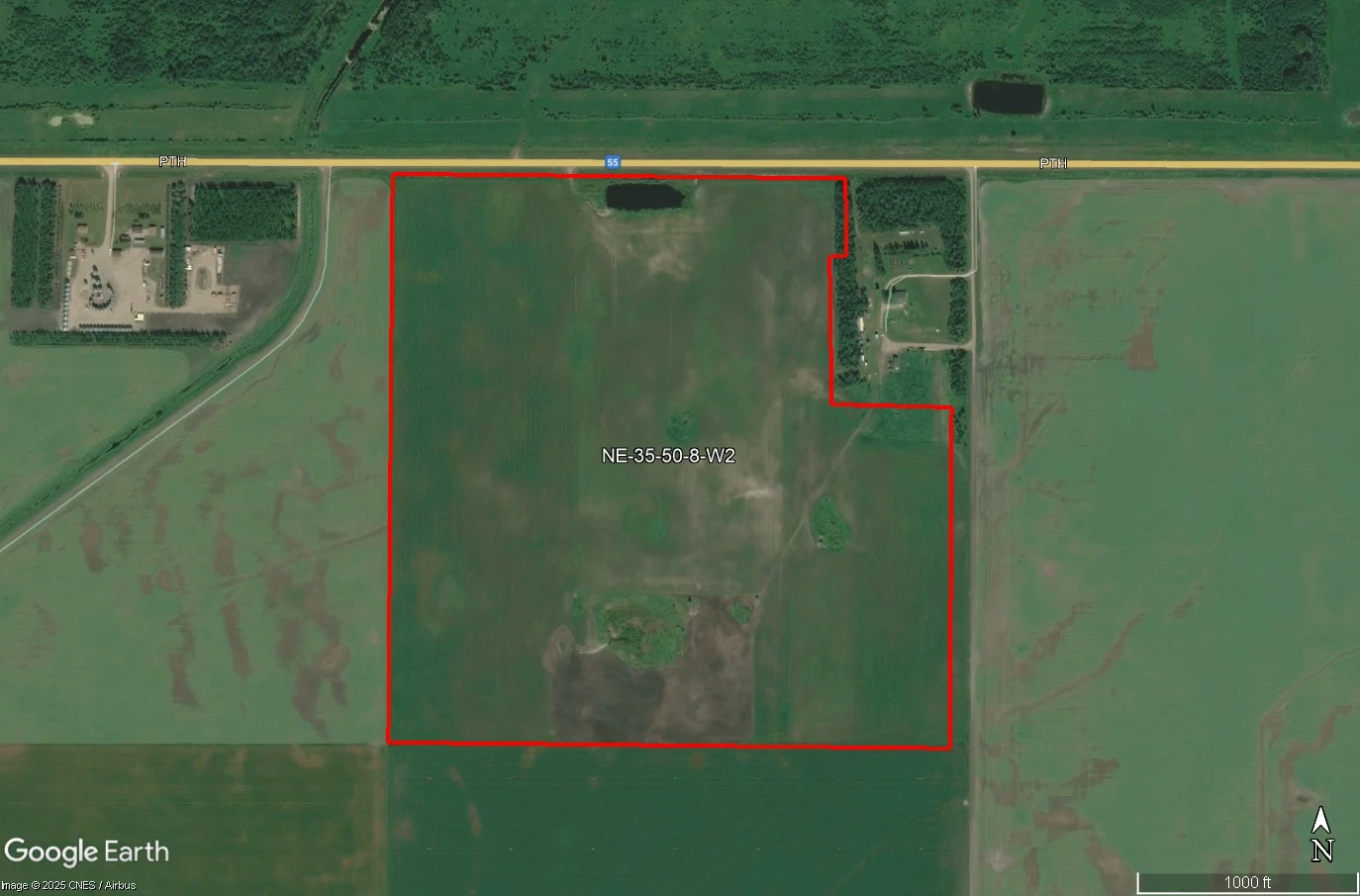 Three (3) miles east of Smoky Burn then turn off on HWY 55, land on south side of the road.