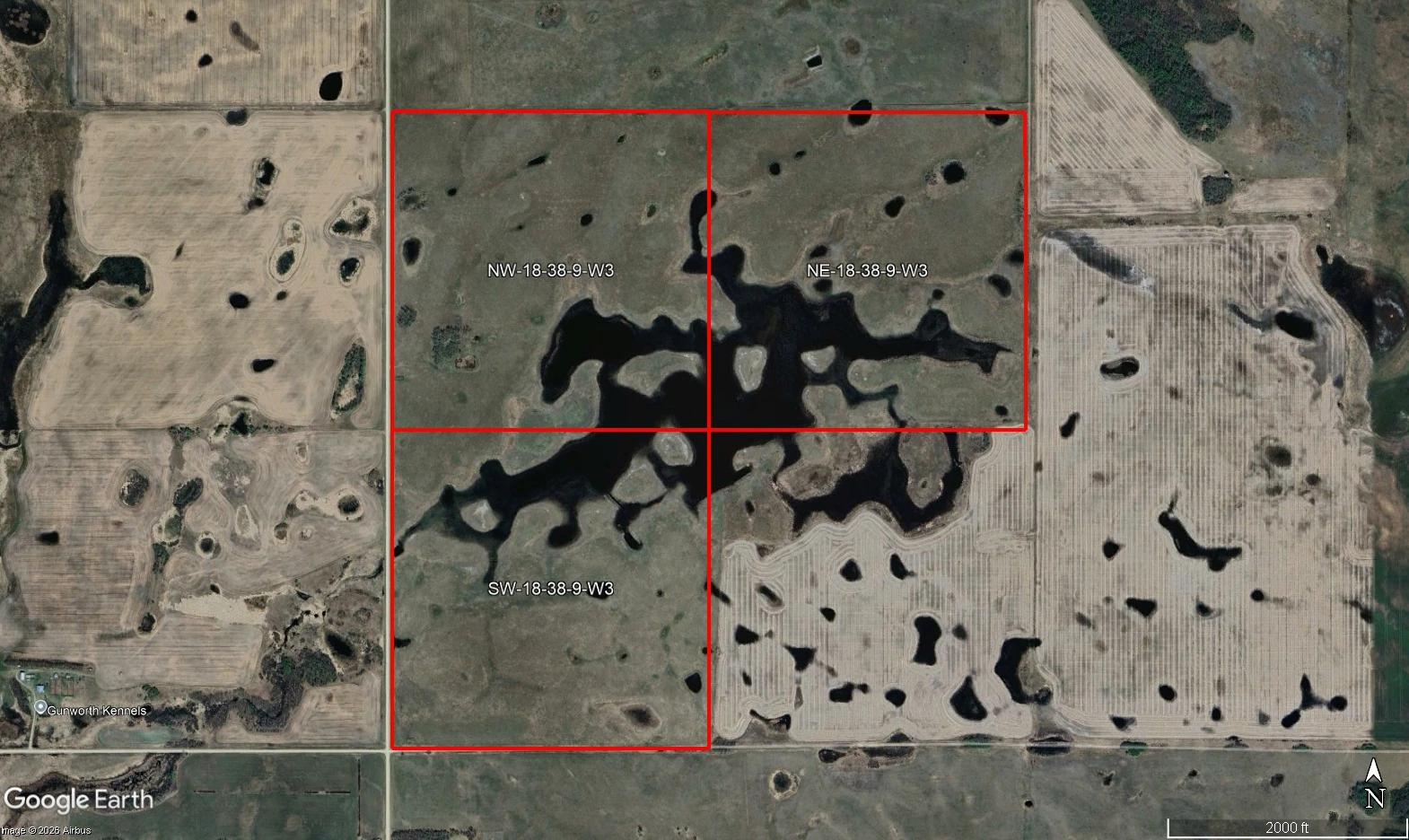The property has two sets of steel corrals, making it well-suited for livestock operations. In addition, there is a bored well located on NW 18-38-9 W3, drilled in August 2021. The well is 72 feet deep with a 30-inch casing, rated at approximately 10 GPM, and is equipped with a solar pump, tire bowl, panels, and gate.